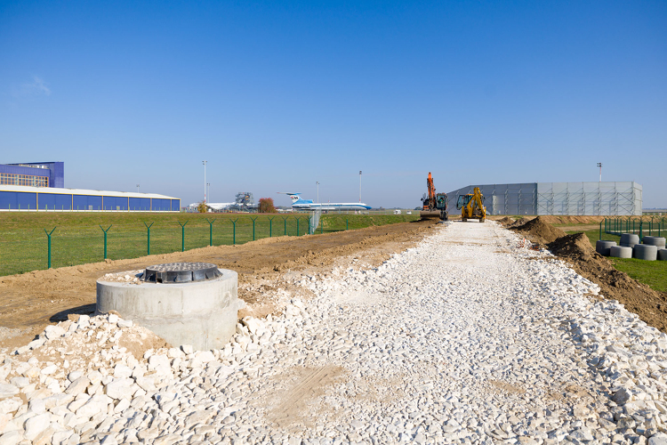 A projekt nem csupán a burkolatépítést foglalja magában, hanem a teljes energiaellátási és közmű-infrastruktúra kiépítését, nagy kapacitású optikai és strukturált adatkábelezést, komplex vízelvezetési rendszert, továbbá informatikai és biztonságtechnikai alap-infrastruktúrát is. A fejlesztés részeként megvalósul egy szociális épület, egy fedett, nyitott tárolószín, új szervizutak és parkolók, valamint a térvilágítás és az akadályfények rendszere. A nyertes ajánlattevő feladata a szükséges engedélyezési eljárások lefolytatása és a teljes körű kivitelezési dokumentáció elkészítése is.