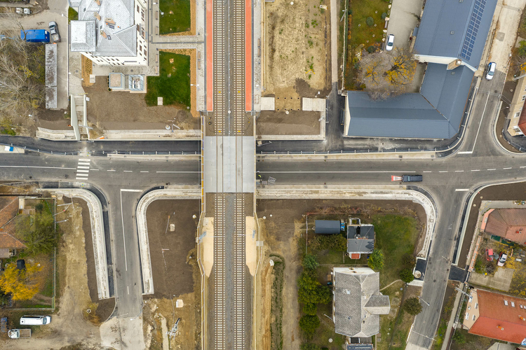 A Colas építésvezetője kitért arra is, hogy az új aluljáró geometriája a környező utcahálózat adottságaihoz igazodik. Az új aluljáró széltében és hosszában megnőtt: a Gyárköz és Vasút utcák közötti szakaszon U-alakú, monolit vasbeton keret készült, amely a felszerkezettel együtt zárt, dilatációs egységet képez. Az átépítéssel biztonságosabbá, korszerűbbé válik a közlekedés az aluljáróban.
